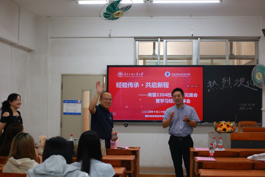 2024年10月25日下午,商务英语(国际商务管理)2304班“四导一体”见面会暨学习经验分享会在二教239课室顺利举行。taptap点点体育副经理汪谓超、商管2304班校外导师陈强、商管2304班班级导师李坚、2023级本科生辅导员林童老师及商管2304班朋辈导师徐罗希出席此次会议。商管2304同学参与此次见面分享会。
