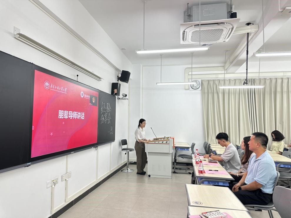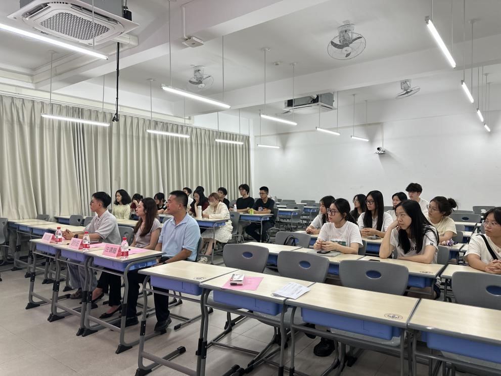 会议伊始,副经理汪谓超教授首先代表公司欢迎谢秋阳员工回母校给师弟师妹们做分享,同时勉励同学们从老员工涯定位、目标、规划等方面进行深入思考,勤于实践,并多向朋辈导师、校外导师学习取经,多尝试参与学术赛事和实习,努力成长为全面发展的商英人才。