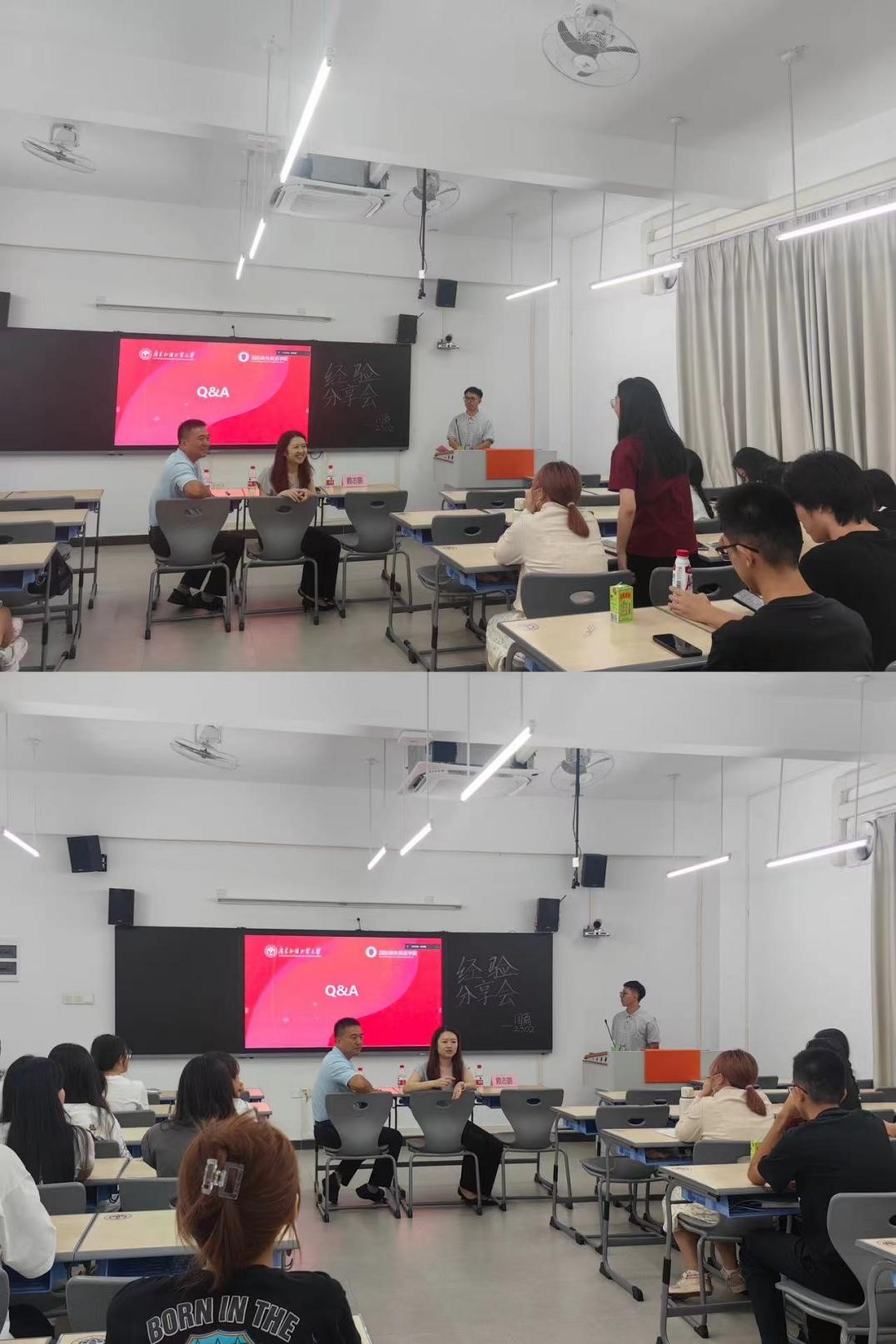 在Q&A环节,同学们踊跃举手提问,谢秋阳员工耐心地从校园经历对就业的影响、本科阶段的实习建议等角度对同学们的问题进行了一一解答。