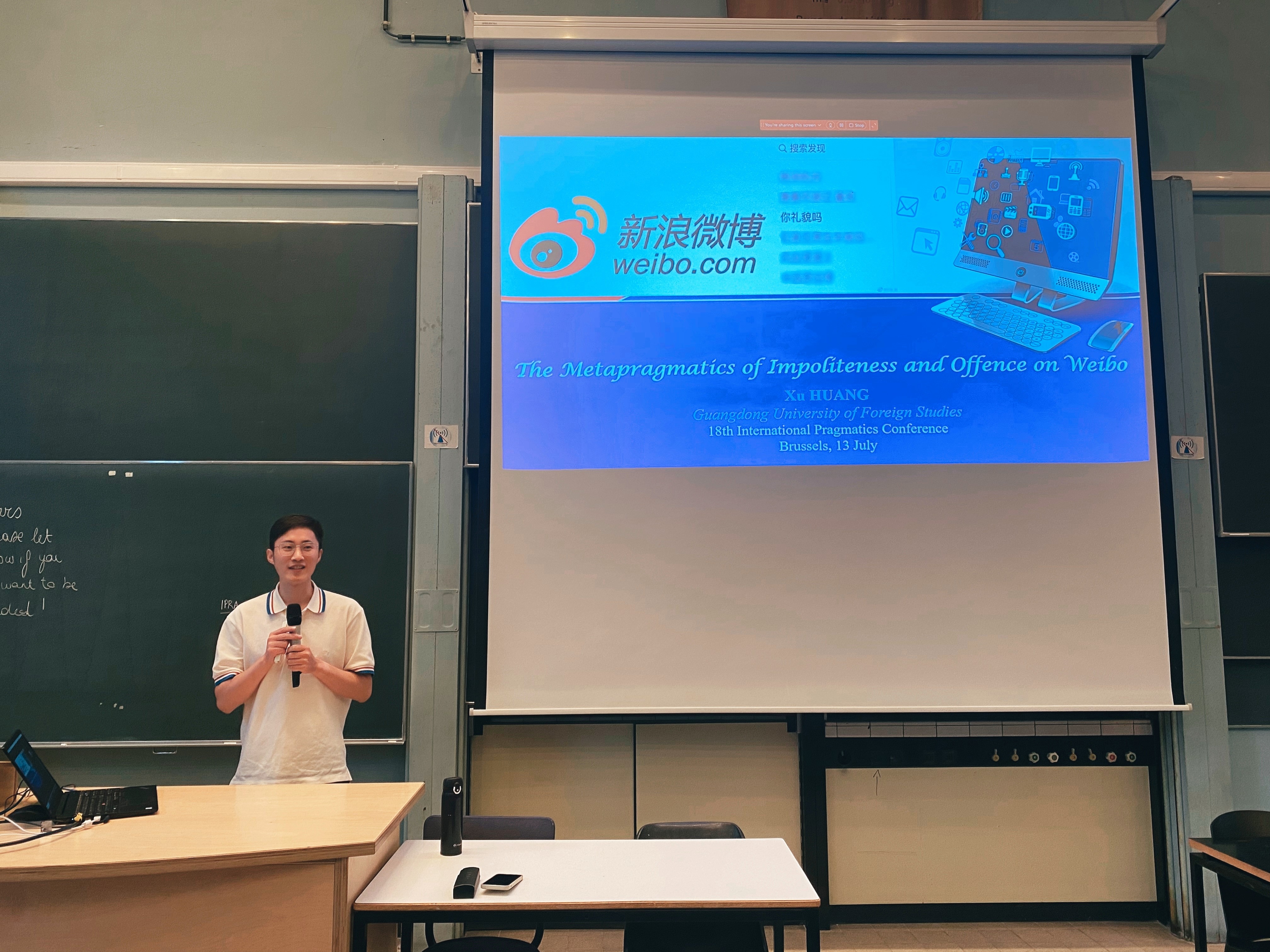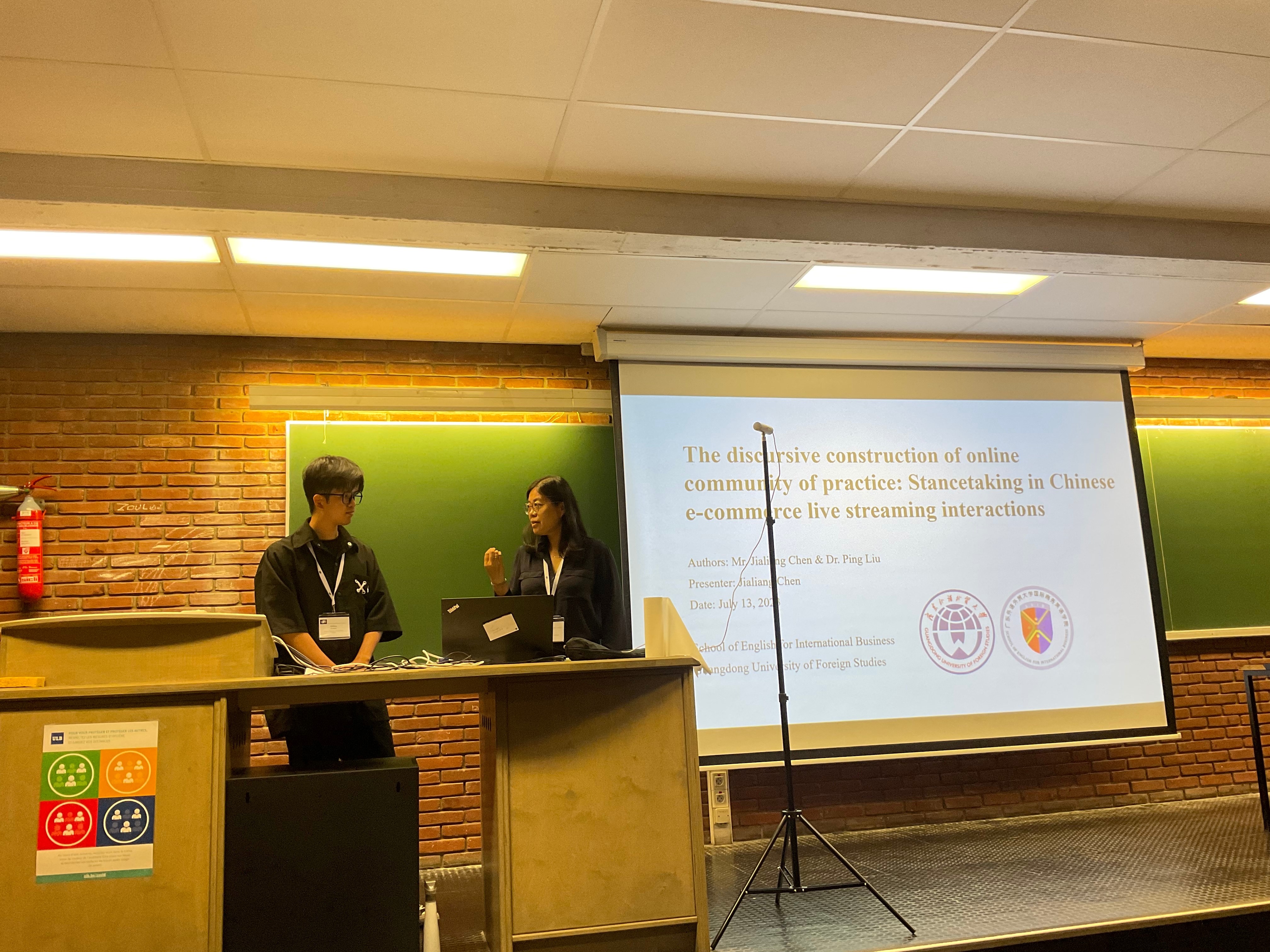 2023年7月9日至7月14日,由国际语用学协会(International Pragmatics Association,简称IPrA)主办、布鲁塞尔自由大学(UNIVERSITÉ LIBRE DE BRUXELLES)承办的第18届国际语用学大会在比利时首都布鲁塞尔顺利召开。本次大会的主题是“The shape of interaction: The pragmatics of (a)typicality”(交际的形式:典型性与非典型性的语用学研究)。会议采用线上线下混合形式,包括主旨发言、专题研讨、个人发言、海报展示等多种学术交流活动。本次大会吸引了全球1500余名语用学者,共设有近130个专题论坛。公司教师刘平教授和黄旭博士以及博士生杨璘璘和陈嘉亮参加了本次大会。