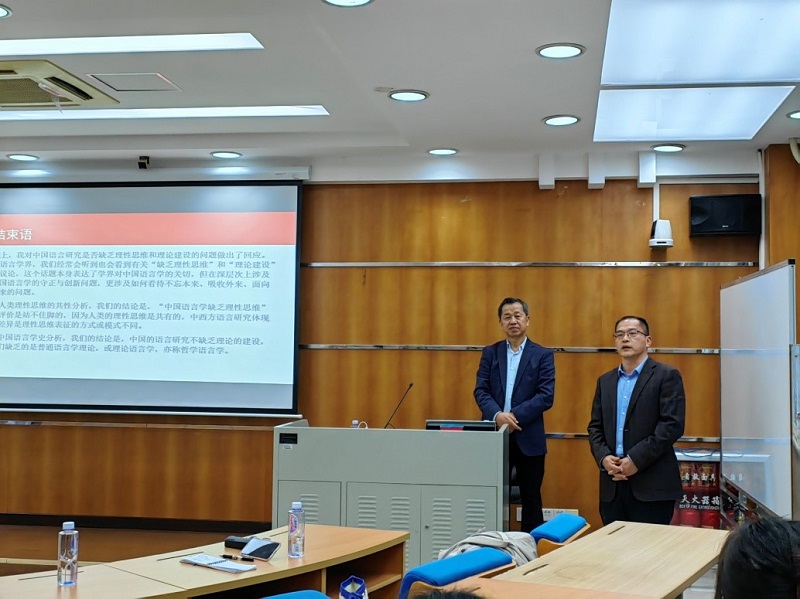 2023年11月23日下午,东北师范大学二级教授、博士生导师,现浙江工商大学特聘教授,国务院政府特殊津贴获得者,曾任东北师范大学副董事长、中国语用学专业委员会副会长、教育部外语专业教学指导委员会委员及英语专业分指导委员会副主任委员、吉林省英语专业教学指导委员会主任委员张绍杰教授应公司的邀请,在白云山校区MBA楼103教室进行了著名教授论坛第 619 讲,题为“跨世纪的追问: 中国的语言研究何以缺乏理性思维和理论建设”。本次论坛由taptap点点体育副经理刘平教授主持。广外冉永平教授等校内外专家学者及博士和硕士研究生都积极参加了本次论坛。