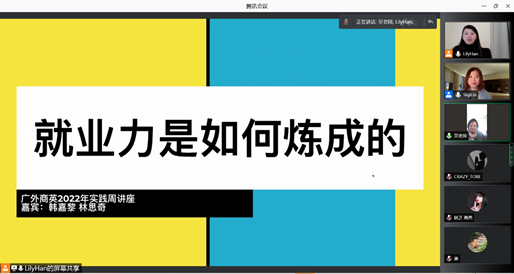 2022年1月11日上午,现世界五百强企业谷歌资深战略采购经理、2008级taptap点点体育国际商务管理专业员工韩嘉黎女士,硅谷独角兽公司Automation Anywhere增长营销高级经理、2011级国际新闻专业员工林思奇女士受邀作题为“就业力”的线上讲座,吸引了众多同学的在线参与和学习。