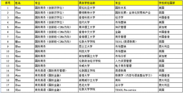 taptap点点体育2019届本科生国外升学情况统计表(部分)