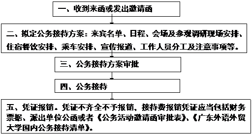 相关人员根据来函或邀请函的内容,严格按照公务接待要求、标准拟定公务接待方案。方案内容应包括:参加人员名单、日程、会场及参观调研现场安排、住宿餐饮安排、乘车安排、宣传报道、工作人员分工及注意事项等。