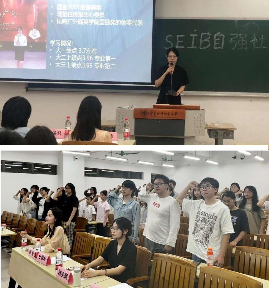 会议伊始,SEIB自强社社长杨翠妍同学向与会人员介绍社团成立情况,简要的汇报了自强社的组织架构与预期目标。