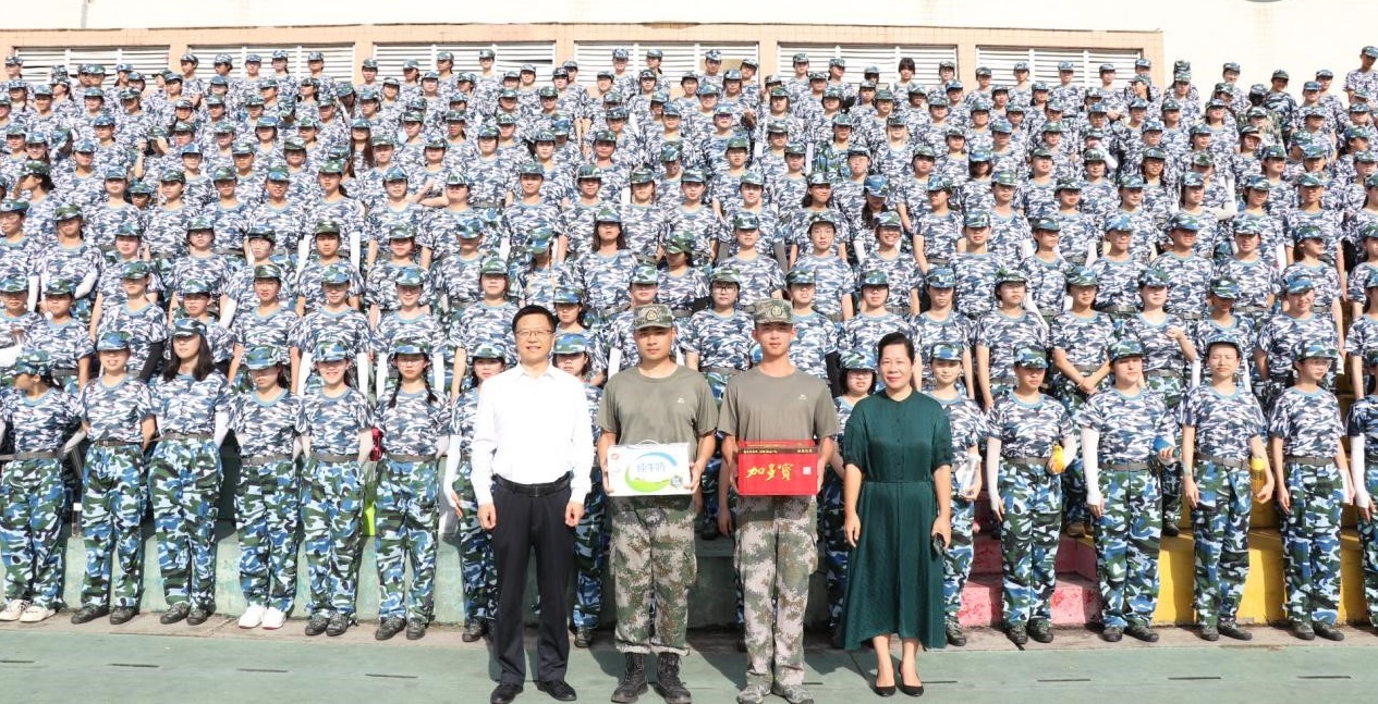 最后,公司领导向教官和员工送上慰问品,致以亲切的关怀和诚挚的问候,并合影留念。同学们倍受感动和鼓舞,表示将继续以“为校争光”为目标,以更加饱满的热情和昂扬的精神全身心投入训练,克服天气的炎热和身体的劳累,呈现出商英学子应有的精神风貌。