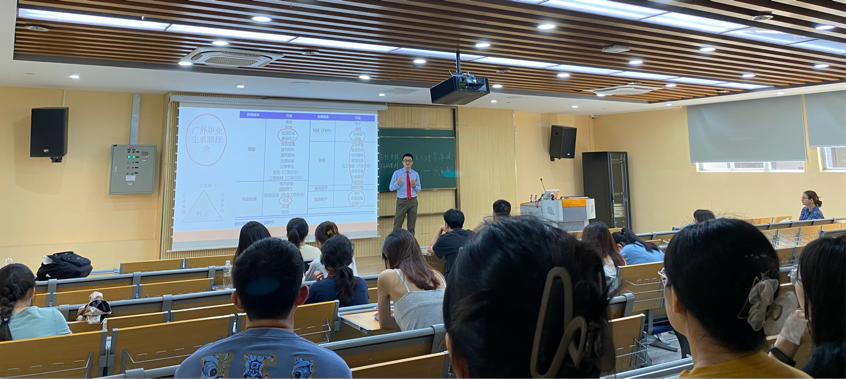 在讲座的第一部分,白俊杰为同学们介绍了“毕业即失业”和“35岁现象”,与同学一起互相交流对此现象的看法,并提出了“以不变应万变”的对策。在讲座的第二部分,白俊杰深入探讨“以不变应万变”的内涵,以“周期”的概念为切入点,提出“一切皆周期,值得做规划”的观点。并进一步指出,在未来,职业生涯中要规划的不是职位,不是公司,不是行业,而是要去思考产业链是怎么运营的。接着,他为大家介绍了就业大趋势、政策导向和行业周期,让同学们深入了解到行业周期、软技能的重要性。讲座最后,白俊杰与同学们围绕行业的过去、现在及未来进行热烈的讨论。