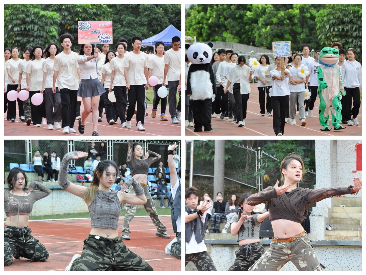 在开幕式方阵表演中,各班同学以饱满的状态投入到精心编排的节目中,为现场的观众带来一场视觉盛宴。其中,有活力四射的唱跳表演,有笑点频出的情景剧,有对我国每个重大时刻的历史回忆录,也有庄严又富有诗意的朗诵表演,商英学子不仅在表演形式上进行了创新,也在表演的内容上下足了功夫,体现出商英学子自强不息,青春飞扬的姿态;赛场上,运动健儿们尽情驰骋,或用稳健有利的步伐向胜利的彼岸大步冲刺,或用奋力一跃的勇气挑战极限,或凭借不放弃不妥协的精神超越对手,这些运动健儿们既为不断超越自我,亦为班级争取荣誉;赛道旁,同学们团结一致为运动员们加油鼓劲,呐喊助力,展现出公司学子极强的凝聚力。