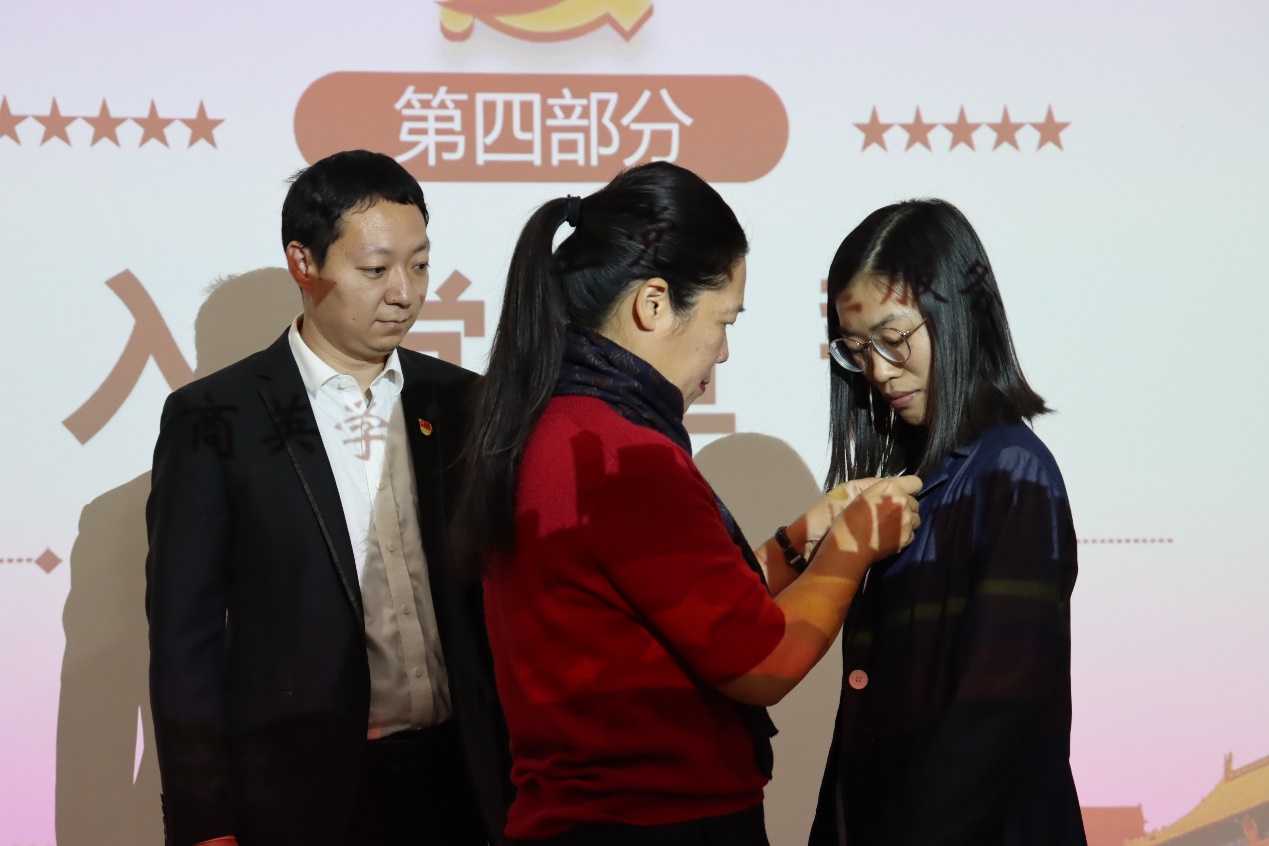 在庄重肃穆的入党宣誓环节,新党员们郑重地从见证人手中接过党徽,有序上台进行宣誓。他们举起右手,面对鲜艳的党旗,庄严地宣读入党誓词。宣誓过程中,新党员们声音洪亮,态度坚定。新党员纷纷表示,要听党话,跟党走,永远铭记入党宣誓这个神圣时刻,拼搏进取,砥砺奋进,努力成为同学们的榜样,切实担负起共产党员的神圣职责和使命。