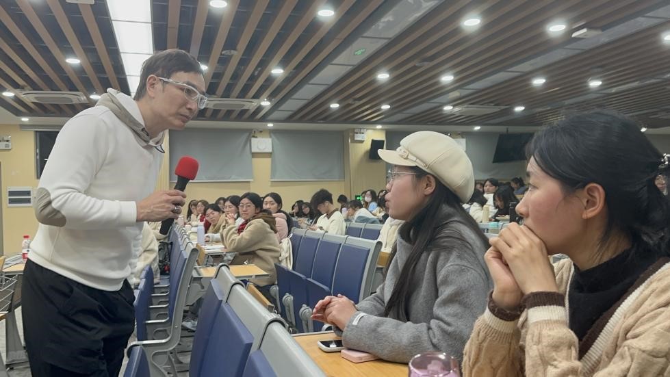 讲座过程中,Sherman老师介绍了老员工未来可能会面临的一些困惑,特别是职业选择和人生发展道路选择,他通过自身经历和员工案例向大家展示了选择不同道路可能会出现的情况,并向同学们传授了许多人生经验和处事智慧。