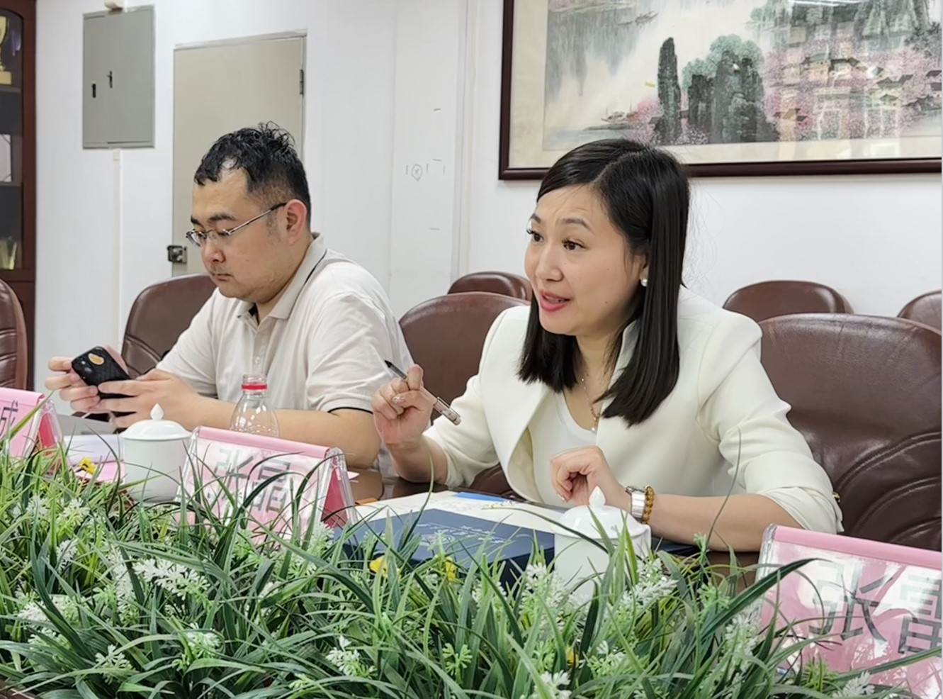 张晶副书记对公司的热情接待表示感谢,她高度评价了公司在员工工作思路、人才培养以及员工品牌赛事打造等方面所作出的努力和取得的成就,同时简要介绍了西安外国语大学商公司的人才培养、学科设置等情况,希望两院在未来进一步加强交流合作、相互支持。