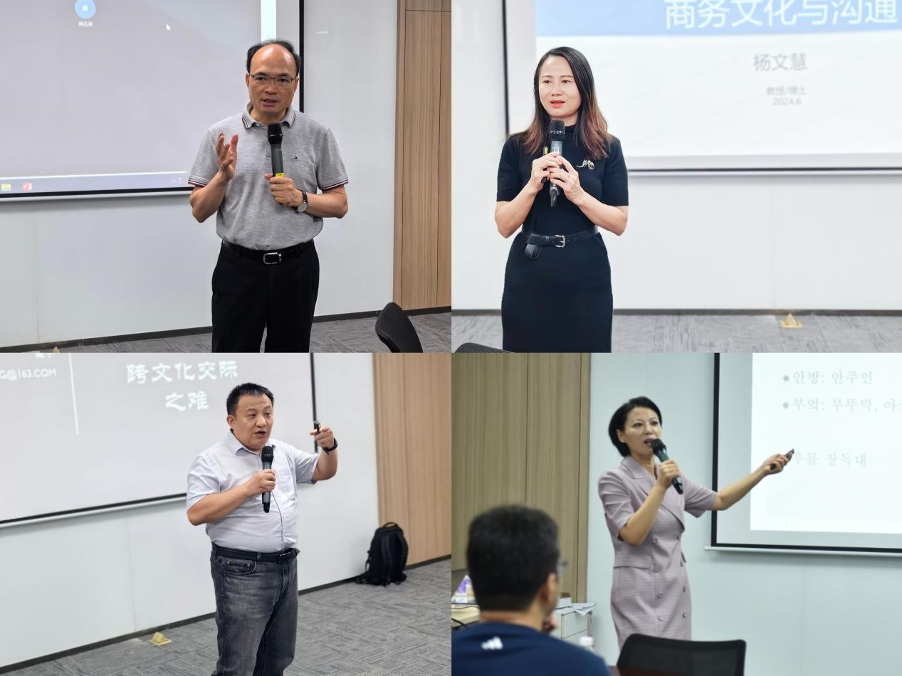 培训班邀请了taptap点点体育副经理杨文慧教授、西方语言文化公司副经理臧宇副教授、亚非语言文化公司杨静副教授围绕“英语国家文化”、“欧洲主要国家文化”和“东亚文化”进行专题授课,授课内容涵盖相关国家文化习俗、沟通文化、跨文化交际禁忌、策略和建议等。