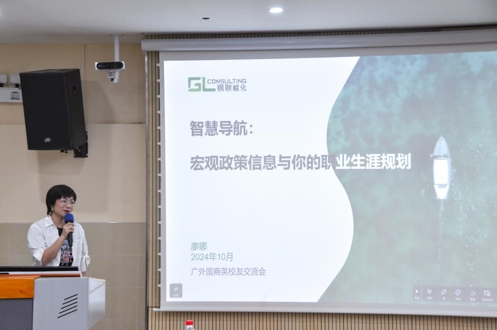 在主题为“宏观政策信息与你的职业规划”的讲座中,廖娜老师先从“看什么?怎么看?看出什么?”三个方面介绍解读宏观政策的思路,结合自身25年从业经验引出了Trend、Methodology、Data(TMD)数据分析模型,指出职业规划要结合数据,研究宏观的政策趋势和时代发展,学会搜集数据、基于问题使用数据,有逻辑、有步骤、有布局地进行职业规划。
