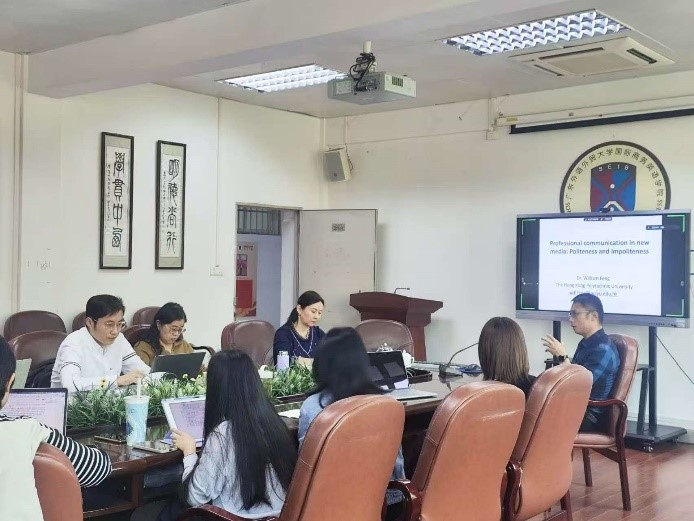 本场讲座于12月6日14:30-17:30在三教318教室举行。冯教授首先回顾了上一场讲座关于Genre Analysis的内容,随后指出商务沟通的话语方式、目的与策略发生了巨大改变,通过具体电子邮件例子,冯教授讨论了邮件中的礼貌用语和称呼问题,并讲解了元认知的概念,探讨教师应采用何种教学策略来指导员工。