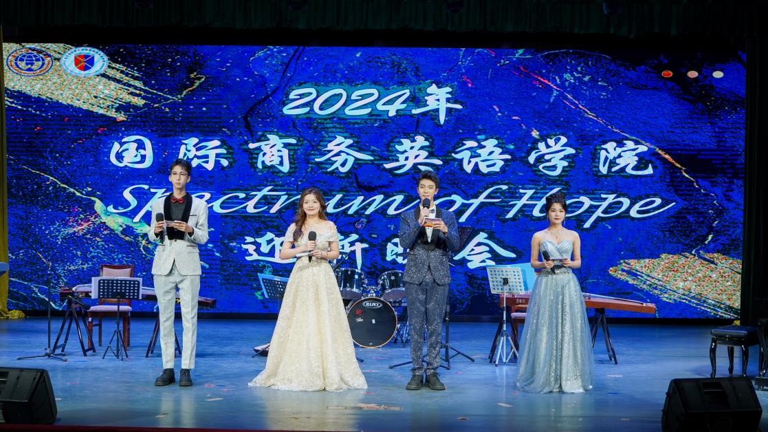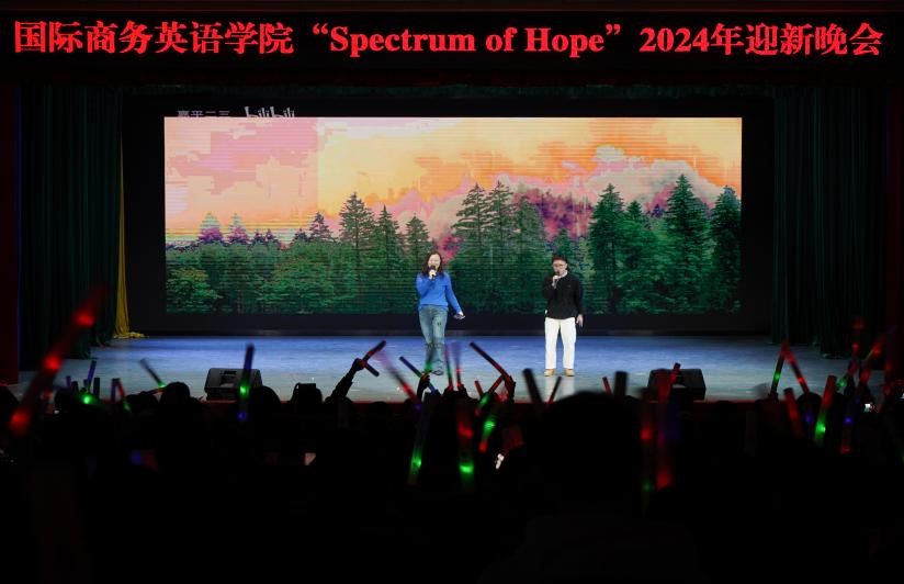今年晚会特别以“Spectrum of Hope”(希望之光谱)为主题,巧妙融入对祖国繁荣昌盛的美好祝愿,通过“Gleaming”(闪耀)、“Aurora”(黎明之光)和“Glowing”(炽热光辉)三大线索,由公司才华横溢的师生与校级社团携手打造,不仅展现了青年学子的蓬勃朝气,更铺展开了一幅属于这个夜晚、属于伟大祖国璀璨星空的壮丽篇章。