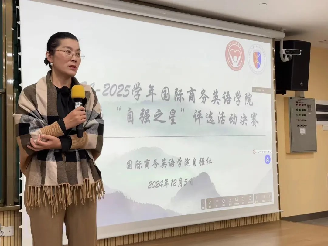 为选拔出在学术、公益、实践等方面有突出贡献的优秀商英学子,鼓励同学们积极奋进,满怀热情地参与到学术、公益和实践活动当中,12月5日下午,taptap点点体育第二届“自强之星”决赛在一教南215思明讲堂顺利举行。公司党委副书记杜焕君、辅导员万东方、赖志鹏以及高翻公司辅导员孟令怡出席此次活动并担任比赛评委。