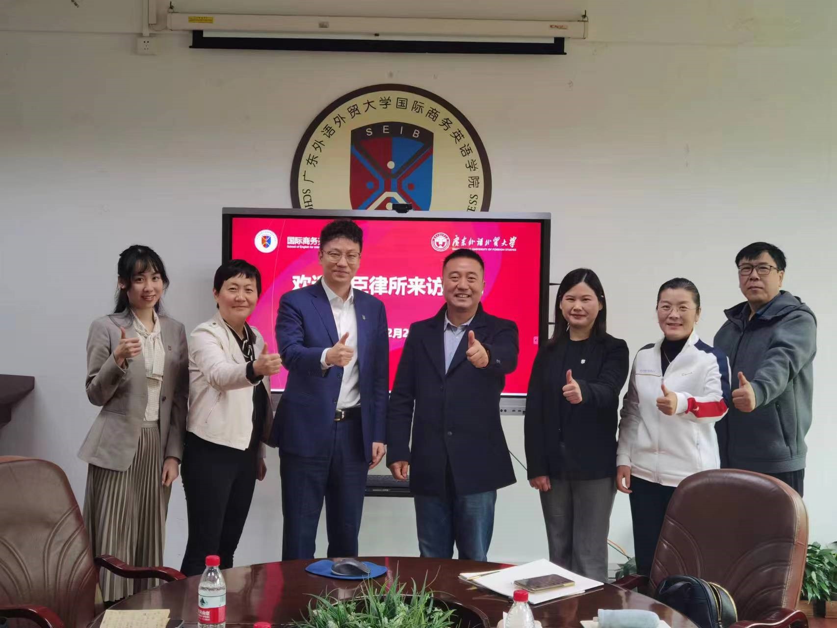车天驰对公司员工在法律行业中的优异表现给予了高度评价,充分肯定了公司人才培养成效。他表示,公司“商务英语+法学”双学位设置契合涉外法治人才需求,其所在的团队也在承接企业出海的法律服务项目,双方有很大的合作空间。与会人员就建立实习基地、行业专家进课堂、长短期授课、实践周讲座、模拟法庭和模拟仲裁赛事指导、律师语言培训合作等方面进行了深入交流。