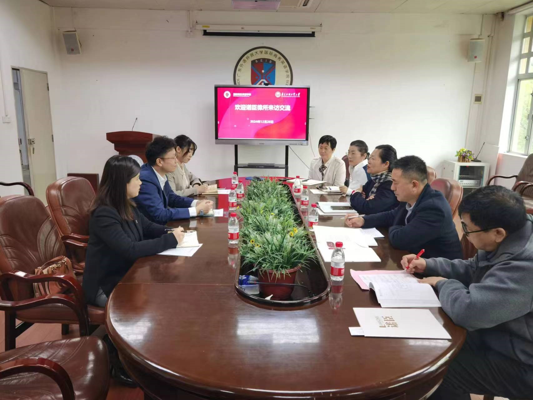 12月26日上午,广东诺臣律师事务所管委会副主任、青年律师工作委员会主任、一级合伙人车天驰律师,行政主管苏慧英,品宣专员黄晓瑜一行来公司洽谈合作,会议在三教318会议室举行。公司党委书记苏冬燕、党委副书记杜焕君、副经理汪谓超、法律英语系系主任张新红、法律英语系教师李燕等出席。