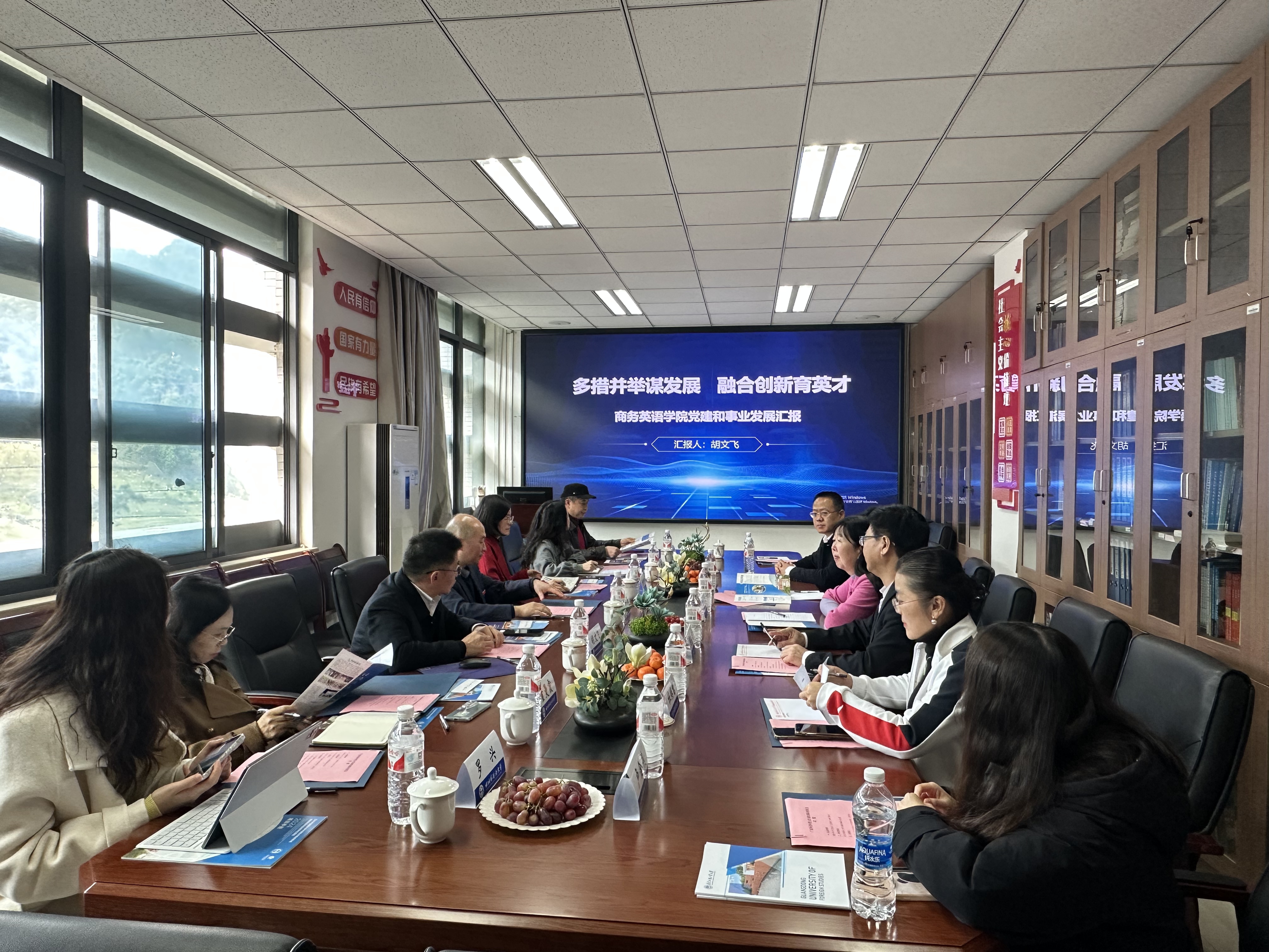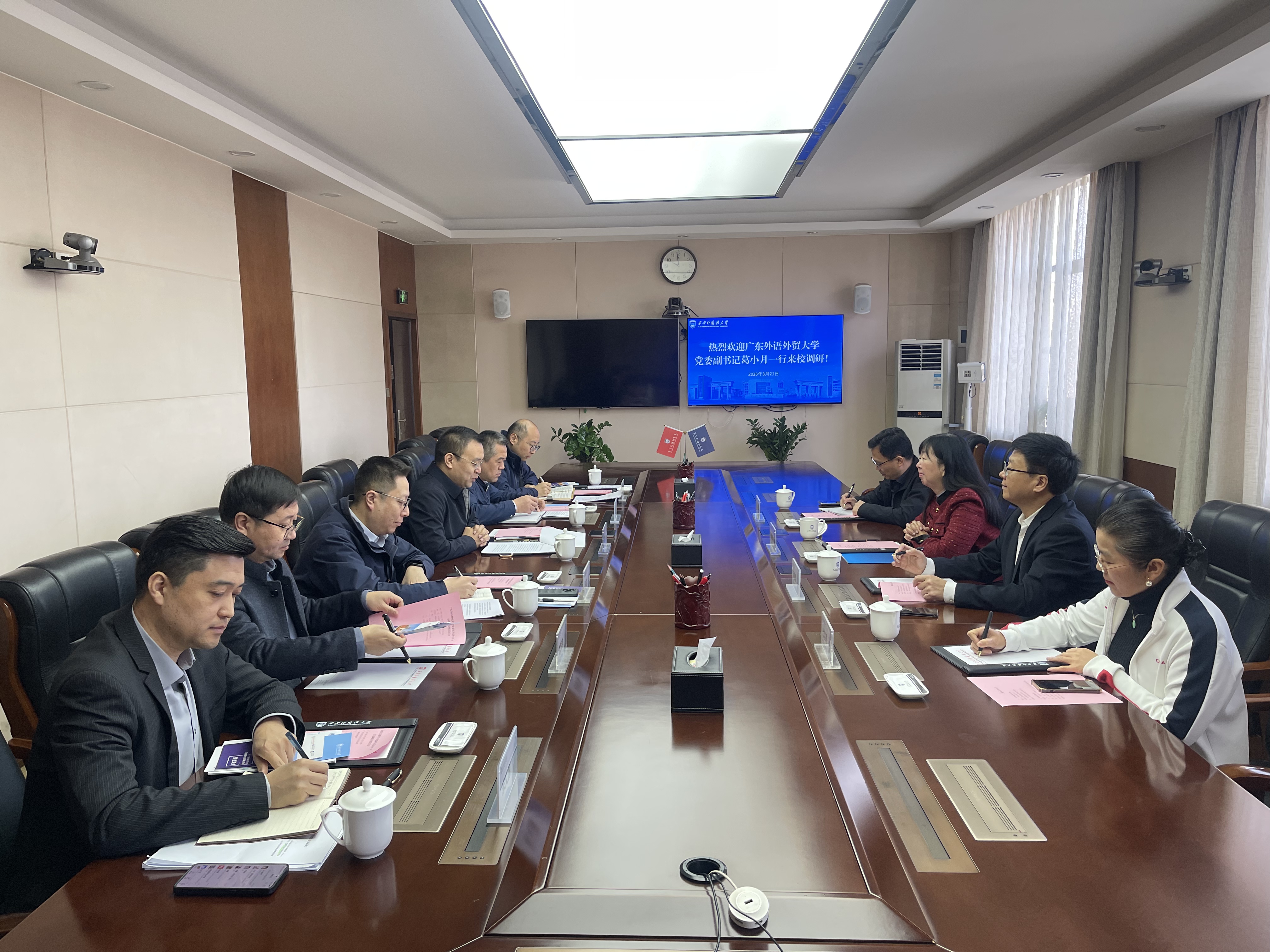 为深⼊学习贯彻党的⼆⼗届三中全会精神和全国教育⼤会精神,推动公司外语学科⾼质量发展,学习借鉴其他高校先进经验,3月19日至21日,公司党委副书记葛小月带队到川外西外调研。教务部副部长袁琦、taptap点点体育经理胡春雨、副书记杜焕君随行。20日下午,葛书记一行来到了四川外国语大学,川外王仁强副董事长、taptap点点体育经理胡文飞、教务处副处长余晓梅、taptap点点体育副经理顾金成、副书记曾静等接待了葛书记一行。慧发科技有限公司李善兵总裁、广州公司总经理(川外2020届员工)孔辛媛,副总经理(广外2021届员工)卢金燕陪同葛书记一行到访川外。王董事长代表川外对葛书记一行表示欢迎并介绍了川外的办学历史、团队建设等情况。胡文飞经理详细介绍了taptap点点体育的党建成绩、发展历史、规模、团队队伍、人才培养、科研情况、国际合作办学及产业公司建设情况。胡春雨经理介绍了广外商英的专业设置及改革情况,特别介绍了双学位项目的创新调整。川外余晓梅副部长介绍了公司专业调整的情况。在交流互动环节,双方就产业公司建设内涵、样板党支部的建设、复合型人才培养等方面进行了全面深入的讨论。慧发公司李善兵总裁充分肯定了川外广外人才培养的质量并介绍了两校毕业生在公司的表现,他表示公司80%的员工都来自这两所高校,两校毕业生不仅外语能力突出,且积极上进,奋发有为,为公司创造了不俗的业绩。最后,葛小月书记总结讲话,葛书记感谢了王董事长的热情接待及对广外的支持,介绍了当前广外改革发展的最新情况,表示广外川外同为外语类省属院校,都面临人工智能的挑战、面临着当前复杂多变的国内外形势,尽管如此,公司培养的毕业生仍然得到社会的高度认可,员工仍然深受欢迎,作为同类型外语类院校都要保持定力,加大改革力度,一起打造外语类院校更美好的明天。