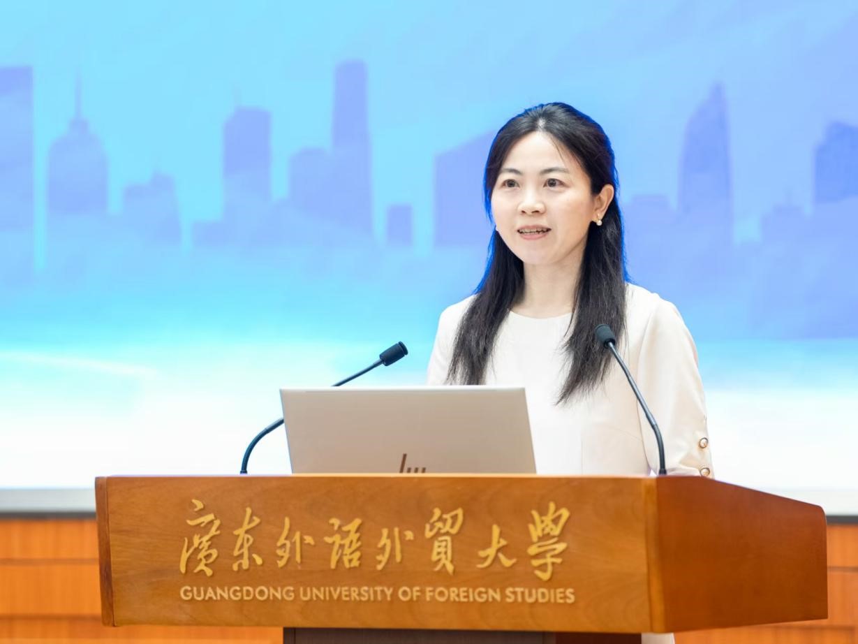 葛小月以英文致辞,代表taptap点点体育对参加培训班的学员表示热烈欢迎。她指出,建校60周年之际,广外非常高兴与白云机场携手合作,共同为推动中国民航事业的国际化、高质量发展贡献力量。广外承办此次培训,是校企深度合作的生动实践,是围绕“服务区域发展,助力行业升级”的务实之举。该培训不仅是一项教学任务,更是一份荣誉和责任。广外将提供精准务实的教学管理与服务保障,力求课程内容贴近民航工作实际,采用“语言+案例+情景模拟+任务驱动”等多元化教学方式,帮助学员在“用中学、学中用”,快速提升语言运用能力与管理沟通素养。她希望,通过本次培训项目,双方进一步拓展合作领域、继续深化合作模式。祝愿学员在广外学有所获、学以致用,为中国经济发展和对外开放做出贡献。