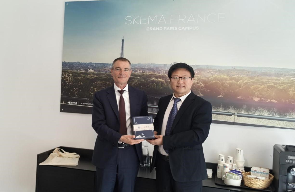 7月10日上午,胡春雨一行访问法国SKEMA商公司,法国SKEMA商公司全球副董事长Christophe GERMAIN、副董事长Sandra VALMIER出席座谈会。双方重点围绕OECD项目升级与专业扩充、国际组织实习支持、员工联合培养、暑期访学等四个议题交换意见。