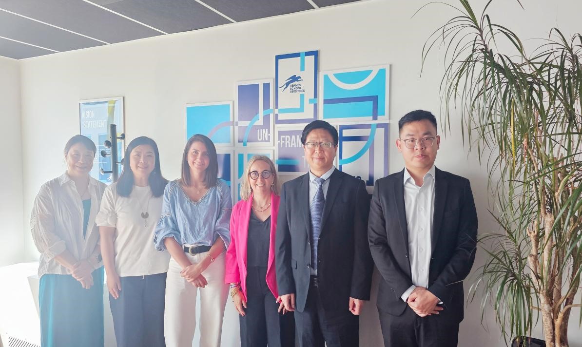 7月8日,胡春雨一行访问法国雷恩商公司,雷恩商公司发展与市场部高级总监Stephanie HIAUMET、国际发展负责人Caroline JOUANIN、中国区经理Louise CHEN、武汉代表处主任杨蓓出席座谈会。双方围绕员工联合培养展开讨论,重点探讨taptap点点体育员工赴雷恩商公司攻读商科硕士项目的具体路径及可行性。为提升项目吸引力及可行性,双方明确新项目应与现有合作项目相互补充,并在专业选择、课程匹配、学费及奖学金政策等方面达成一致意见。