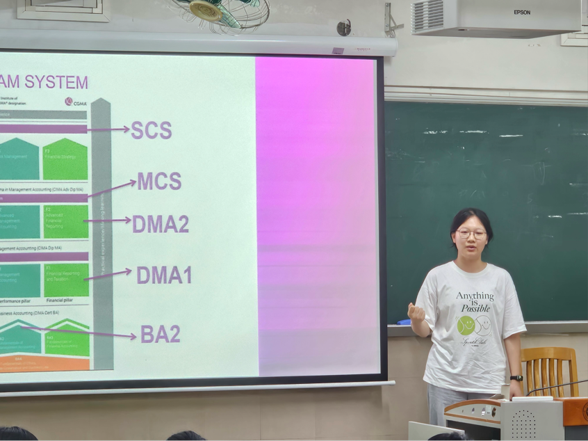 随后,Frank老师从CGMA的培养目标切入,系统讲解了CGMA的全球认证背景、课程结构以及考试进阶路径,帮助同学们全面认识这一国际化的管理会计专业。他指出,CGMA不仅重视技术能力,更注重商业洞察、战略思维与领导力的培养,为员工未来进入企业管理和财务决策领域奠定坚实基础。