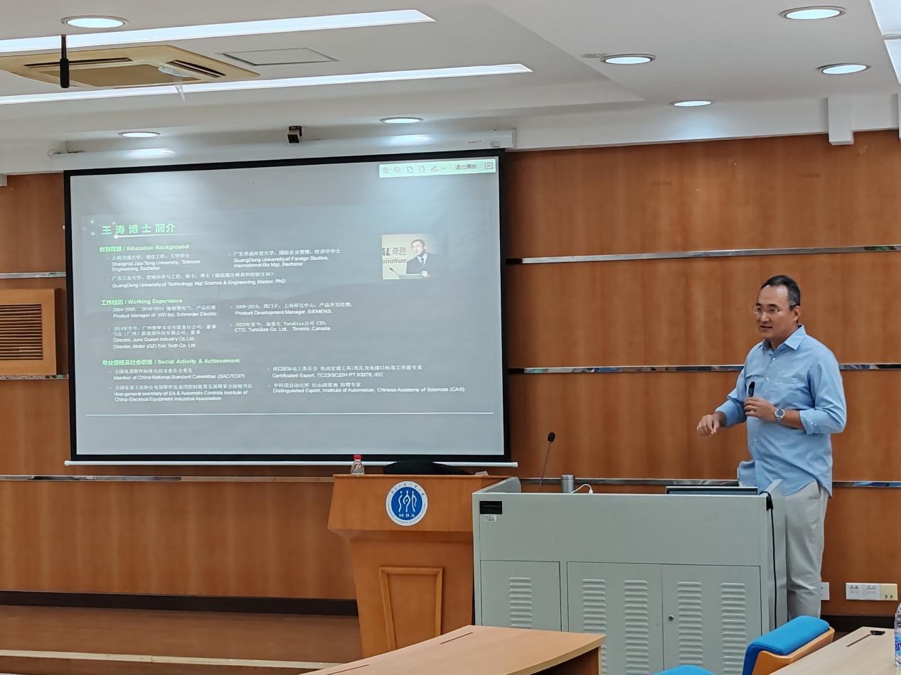 活动伊始,经理助理乐思伟简要介绍了王涛博士复合型的教育背景、资深行业经历,以及其在参与制定国际国内技术标准和社会职务方面的卓越成就,同时,强调了“行业专家进课堂”活动的重要意义,并鼓励同学们积极把握这一学习平台,将理论知识与行业前沿实践紧密融合。