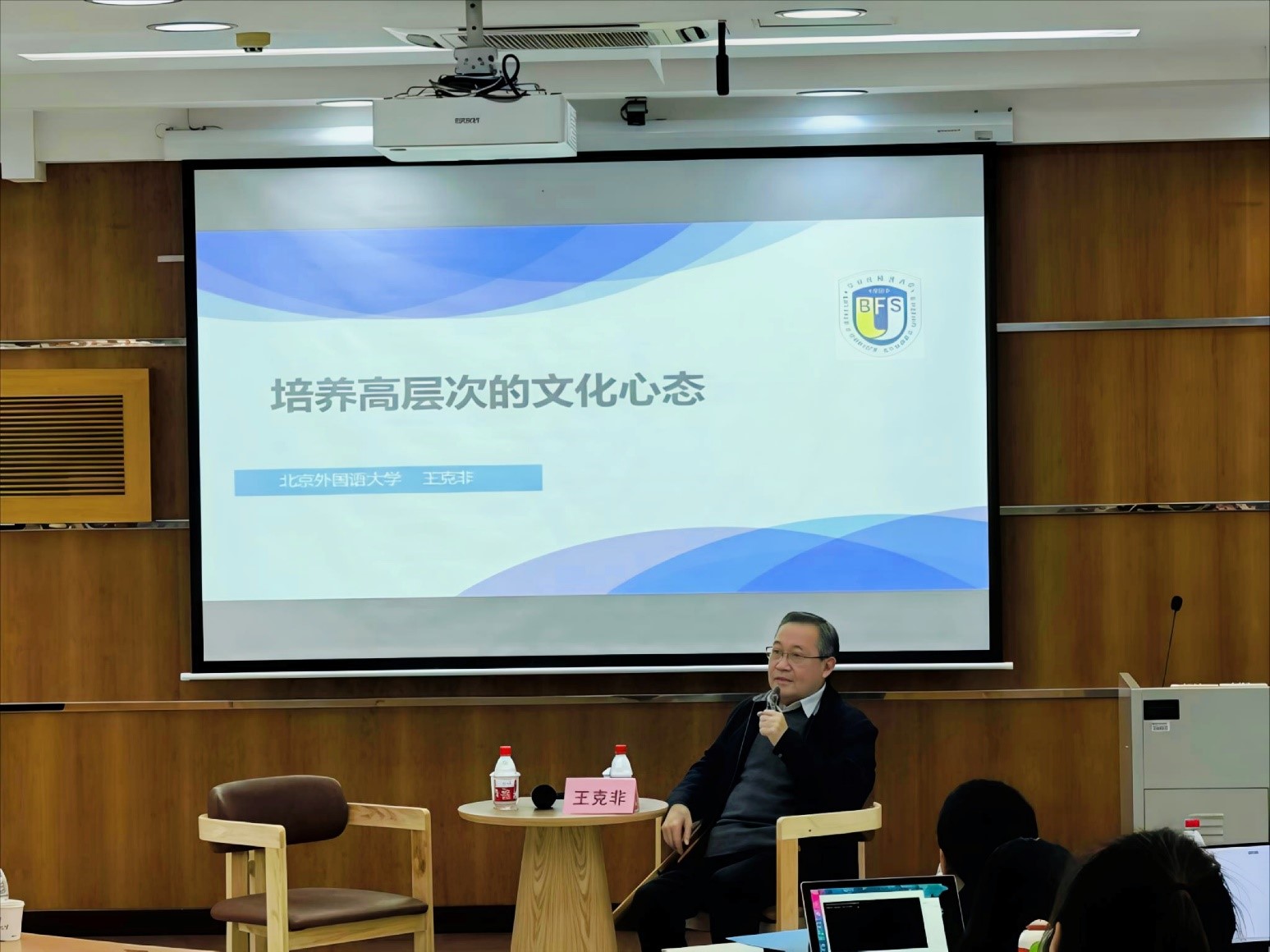 本次讲坛以“座谈+访谈”相结合的形式开展。讲座伊始,王克非教授以恩师许国璋先生为引,阐述了“高层次文化心态”的内涵与意义。王教授结合自身师从许先生的经历,强调了国际视野与比较视角在外语教育与学术研究中的重要性,鼓励师生广泛阅读国际文献,深耕专业领域,同时保持文化自觉与学术自信。