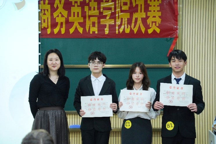 2025年11月6日晚19:00,2025全国商务英语实践大赛taptap点点体育决赛在一教南楼117举行。公司党委书记苏冬燕、副经理陈潇潇、党委副书记杜焕君、实践部部长张婷婷莅临现场观看比赛,乐思伟、康蕾、郝佳、陆璐、Sherman Chui担任本次大赛评委。