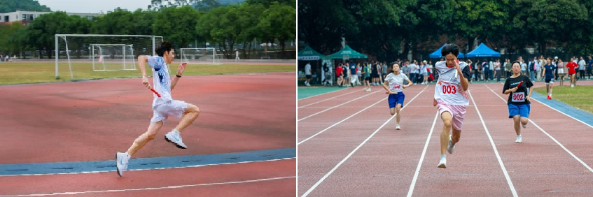 在院运会进入尾声之时,趣味接力赛再次将赛场气氛推向高潮。各班队员以精准的交接棒技术和默契的团队配合展开角逐。跑道上队员们奋勇争先,赛道旁各班观众呐喊助威,展现出良好的团队精神和集体荣誉感。该项目不仅考验运动员的个人速度,更注重团队协作与战术配合,充分体现了体育运动的集体价值,有效提升了班级凝聚力。