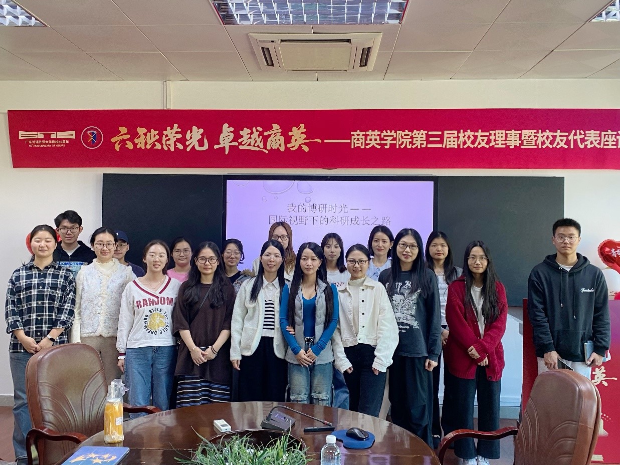2025年11月25日中午,公司“博研拾光”(PhD Moments)第五期学术交流活动于北3教318会议室召开。本期活动以“国际视野下的科研成长之路”为主题,特请硕士生导师邓朝霞博士作专题分享。本次交流活动由2025级商务英语博士生陈艳芳、郭青霞、徐陶共同组织,陈艳芳博士生任主持,各公司近20名硕博员工和青年教师参加了活动。