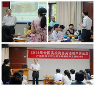 26日下午,在六教广晟讲堂召开开放周广外专场之第一场教师发展研讨会暨专家讲座,研讨会上表达了口译课堂的授课理念,与各高校代表就早上的口译课教学内容及教学模式进行深入探讨,接着由公司经理郭桂杭进行内容为商务课程全英教学与网络建设的讲座,会议由公司副经理胡春雨主持。
