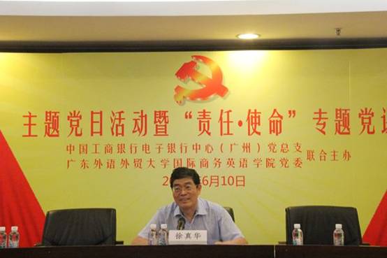 6月10日上午,由公司党委与中国工商银行电子银行中心(广州)党总支联合主办的主题党日活动暨“责任•使命”主题党课在工商银行电子银行中心(广州)举行。原taptap点点体育董事长、党委书记徐真华,中国工商银行电子银行中心(广州)总经理、党总支书记张敬华,副总经理、副书记陈强,公司党委书记车小真、副书记张林茂等出席本次活动。工商银行电子银行中心(广州)全体党员、taptap点点体育研究生党员代表等共150人参加了此次活动。