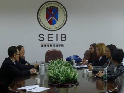 11月17日上午,SAF副会长Carol女士一行走访广外,并在公司交流处周鹏老师的陪同下特别来访taptap点点体育就公司项目开展情况进行调研。公司郭桂杭经理亲切接待,双方就公司员工的交换项目开展情况进行了深入交流。一同出席的还有SAF广州办事处的王艳明经理,项目协调员李缇缇和高校联络员邵莉施。