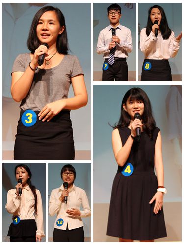 经过有备演讲的激烈比拼,八名选手成功晋级第二环节——即兴演讲。即兴演讲不仅是对选手们的临场反应与心理素质的考验,更是对其思维广度与深度的巨大挑战。面对“是否应该限制游客进入大公司园”的问题,3号选手高楚盈表现得从容淡定,她认为在人数控制适当的前提下,允许游客进入校区能减少公司与社会的隔阂,提高公司声誉;七号选手黄子琛在“是否允许员工用手机”的方面则提出要顺应高科技日渐普及的发展趋势,利用手机有效帮助人们学习,面对评委对“科技依赖”的质疑,他表示问题并不在于技术本身、而在于人们如何去使用它。选手们对弃婴摇篮、中国汉字的简化与否、民族传统服饰等问题的剖析亦引起了现场观众的关注。