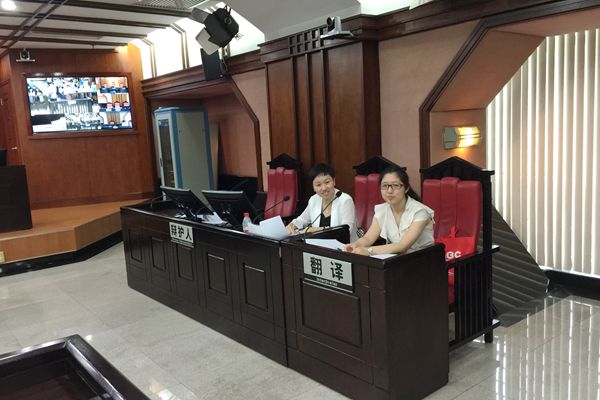 答:沈老师负责当天观摩的庭审的法庭口译工作,而我和我的搭档负责当天在广州中院新闻发布中心的会议同传工作。我们负责当天除庭审口译外其它所有的会议口译工作,主要是在庭审观摩前向参会代表翻译中院廖荣辉副经理致词和对法院的基本介绍,在代表们的庭审观摩结束后,翻译中院刑一庭万云峰庭长以“改革和完善中的中国刑事审判”的为题的大会演讲。