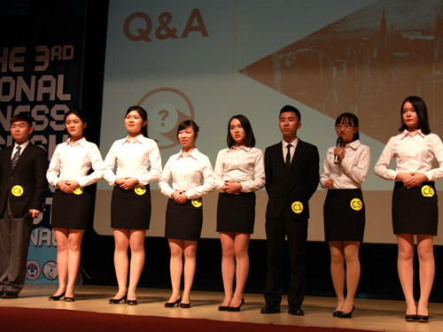 紧接上场的是湖南大学参赛队伍Super7+1,他们将目光锁定在今年8月中国电商行业和零售行业内的一次引人注目的合作上——阿里巴巴和苏宁云商宣布携手“闪婚”。回想昔日阿里物流难,苏宁愁上线的境况,Super7+1敏锐地感受到本次两大电商合作的特殊意义。在讲演中,Super7+1通过与众不同的Q&A的方式对这场“联姻”是否合适、是否长久作出了有理有据的评判。而更难能可贵的是,Super7+1经过充分的调研,在两大电商利好宣传的背后,解读出了“联姻”中的问题弊端,并提出了新颖的观点和详实的改进方案。Super7+1认为“联姻”后的“Ali-Su”可以将业务范围拓展至农村地区,并通过“Offline Club”的方式在农村生产和城市消费间搭起连接的桥梁。Super7+1以独具创意的讲演、清晰明了的表达和轻松愉快的台风获得了评委们的赞许。