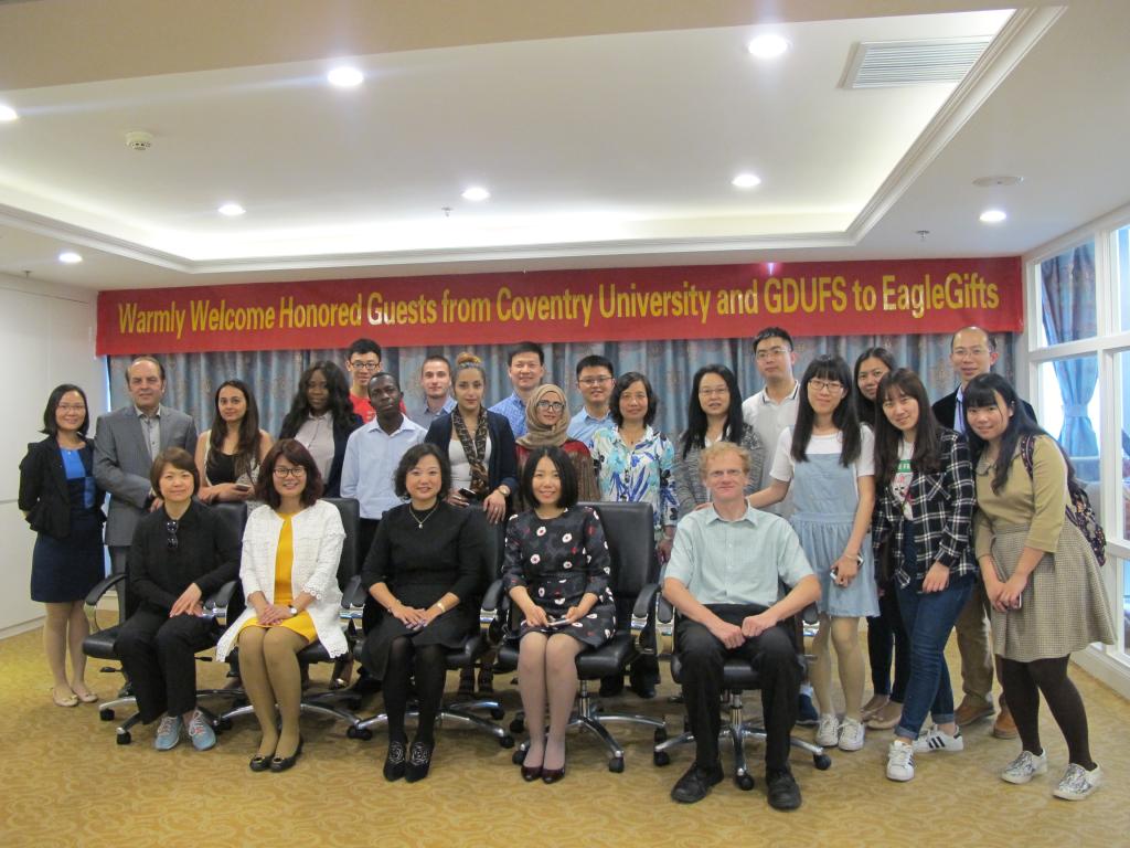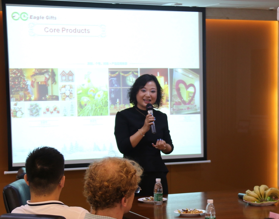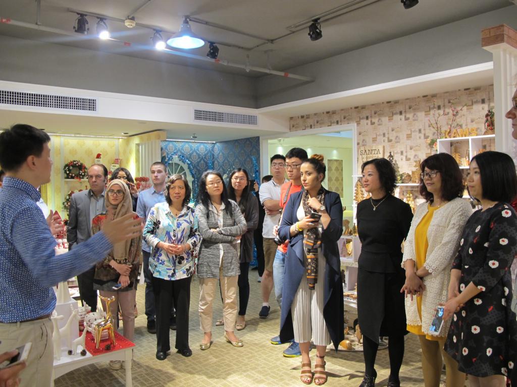 下午,公司组织英国考文垂大学(Coventry University,CU)的海外师生代表与公司师生一行共19人到广东盈浩工艺制品有限公司(Eagle Gifts,以下简称盈浩公司)参观学习。盈浩公司总经理、taptap点点体育88级员工罗慧枰女士及相关部门负责人亲切接待并陪同参观。公司党委书记车小真、实践教学部主任王欣以及部分师生参加了此次活动。