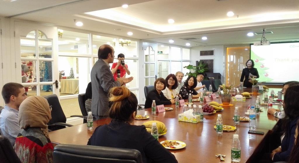 罗慧枰总经理十分重视此次活动,亲自为大家接风并在座谈会上用流利的英文详细介绍了盈浩公司的企业发展之路、企业文化建设、国际交流合作和未来发展方向等内容。公司实践教学部主任王欣代表公司对盈浩公司的大力支持和周到安排表示感谢,对未来更多的校企合作表示期待。