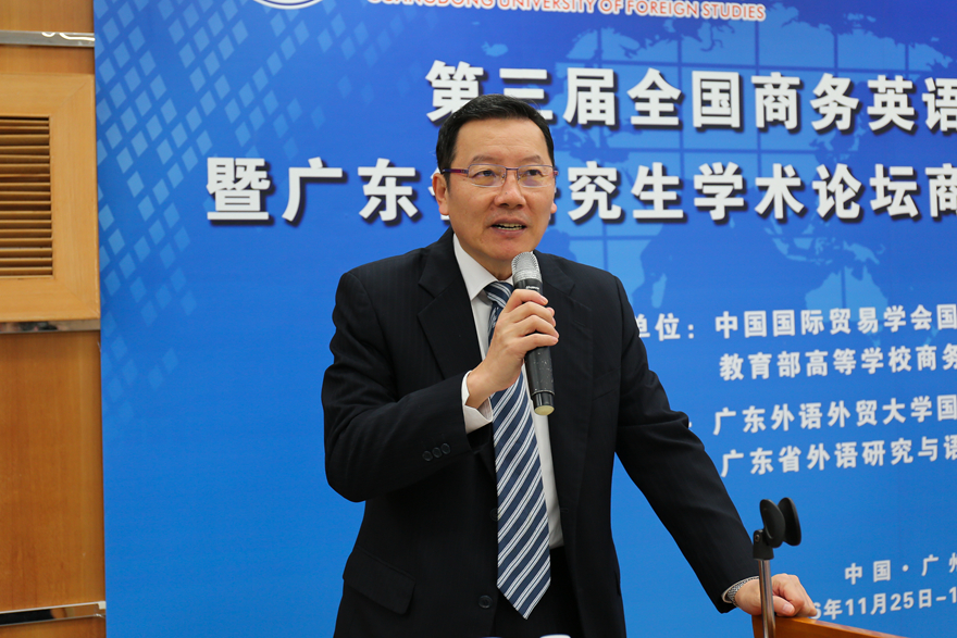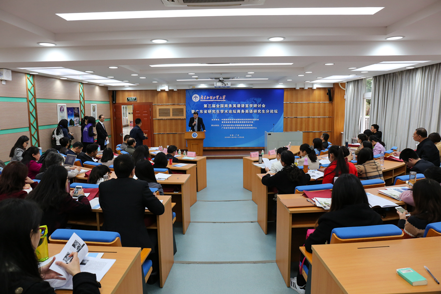 11月25日上午,第三届全国商务英语语言学研讨会暨广东省研究生学术论坛——商务英语研究生论坛在公司MBA教学楼召开。来自各高校的商务英语专业教授,学科带头人等知名学者共聚一堂,开展主旨演讲和讨论。公司副董事长方凡泉,国际语言服务与管理研究所所长、对外经济贸易大学英语公司教授王立非,对外经济贸易大学博士生导师徐珺,湖南大学外国语公司教授莫再树,公司国际商务英语公司党委书记车小真等出席论坛。论坛由公司taptap点点体育经理郭桂杭主持。
