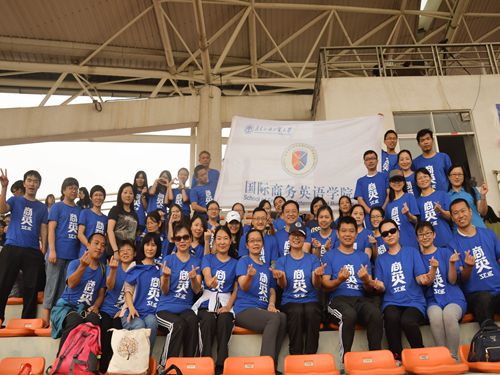 趣味运动会属于集体项目,各位参赛教职工需要合作完成各种趣味运动项目。商英代表队获得了团体第六名的成绩。