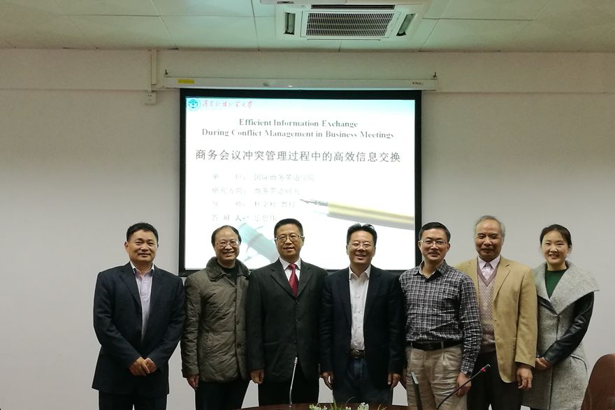 2016年11月26日下午2点30分,由杜金榜教授指导的商务英语研究专业商务文化与交际研究方向的博士生乐思伟的学位论文答辩会在三教318教室顺利举行。本次答辩会由对外经济贸易大学的王立非教授担任答辩委员会主席,湖南大学的莫再树教授,taptap点点体育的朱文忠教授、何家宁教授和胡春雨教授分别担任答辩委员会委员。