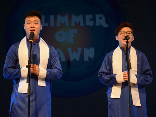 而taptap点点体育的歌队带来的歌曲串烧《breaking dawn》将现场的观众带回到19世纪的法国感受孤独的力量。最后的由大一新生和大四师姐相声表演,以“我不是万东方”“许仙白娘子”等元素为在场观众带来欢乐,并为破晓的黎明埋下了伏笔。