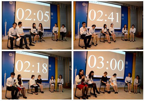 比赛队伍分为专业组和非专业组四组,第一部分为三分钟的话题讨论,各支队伍分别担任讨论者和翻译者一次;第二部分为中文视频翻译和配音环节,各支队伍担任视频中讲话人的配音角色。在比赛的第一部分,非专业组的四支队伍在观看了简短的介绍视频之后,围绕视频中反应的当前社会问题——留守儿童和网络暴力展开讨论。不少选手从自身的经历出发,大谈对社会问题的看法,并给出科学系统的意见以及解决方案。专业组选手们分别在美联航以及中国“走出去”战略上,用新颖的方式发表自己的意见和看法,同时还灵活运用了生动形象的例子进行比较。在比赛的第二部分中,非专业组的四支队伍分别为颇有人气的电影“让子弹飞”和“我的少女时代”进行配音,展现出极高的水平。而专业组的四支队伍分别在“锵锵锵三人行”和“一虎一席谈”上发挥出了专业组应有的水平。