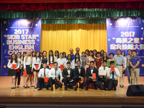 5月26晚19点,2017“商英之星”英语综合技能大赛决赛在六教报告厅拉开序幕,Ambience队等8支队伍同台竞技。副经理彭玲玲、戴桂玉、青松、杨丽、陆露和李冬云六位老师应邀担任本次比赛评委,公司经理郭桂杭、党委书记王秀民、副书记张林茂出席。