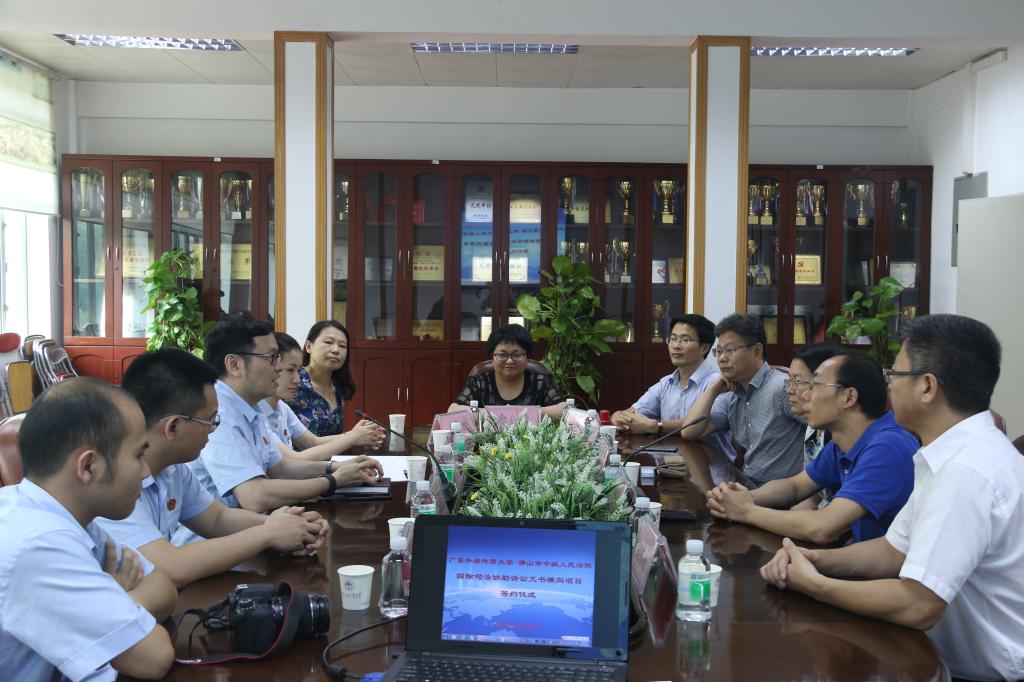 公司与佛山市中级人民法院签约国际司法协助诉讼文书横向项目