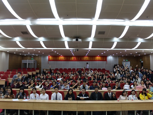 11月21号晚上7点,2017年taptap点点体育暑期“三下乡”社会实践活动总结暨表彰大会在图书馆负一层报告厅举行。国际商务英语公司党委副书记张林茂和部分辅导员参加表彰并为获奖队伍或个人颁奖。