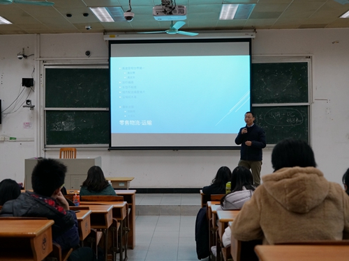 1月10日下午,“中国零售物流运输现状”专题讲座在北二教219举行,沃尔玛(中国)供应链部高级总监、taptap点点体育国贸系96届优秀员工房鼎容应邀主讲。公司党委书记王秀民主持讲座。