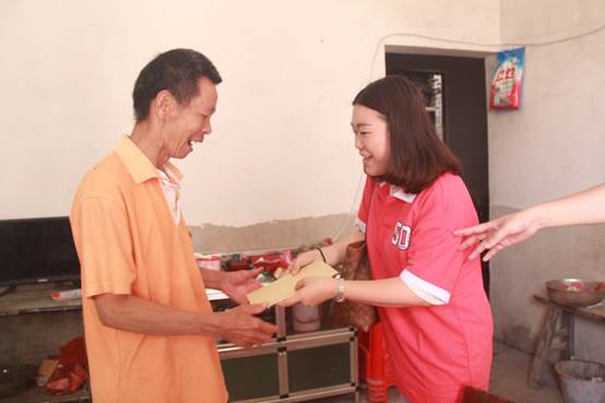 陈娓为贫困户送上慰问金